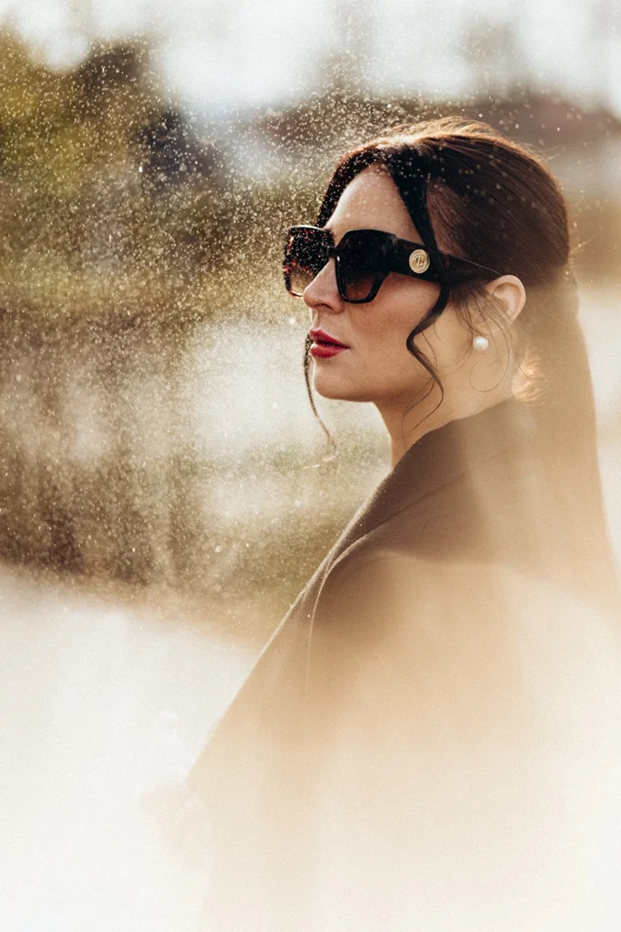 - Wähle stylingtechnisch klare Elemente: Mantel, Brille, Strukturstoffe, klare Farben, Akzente.
