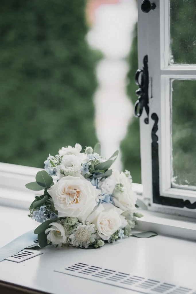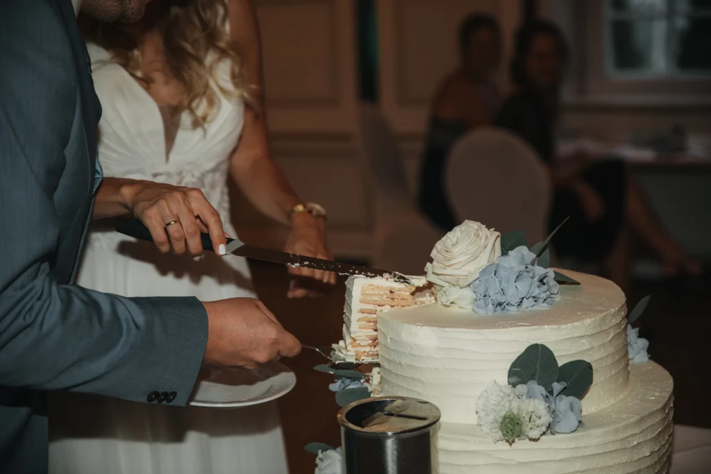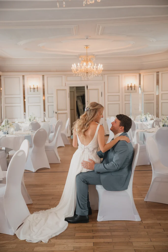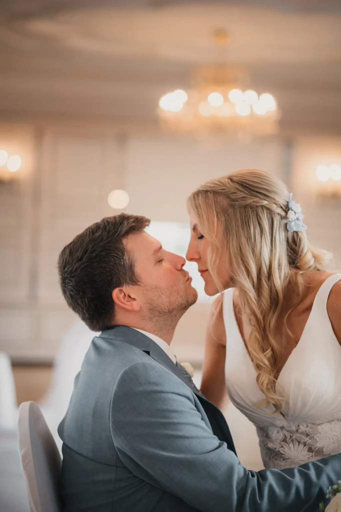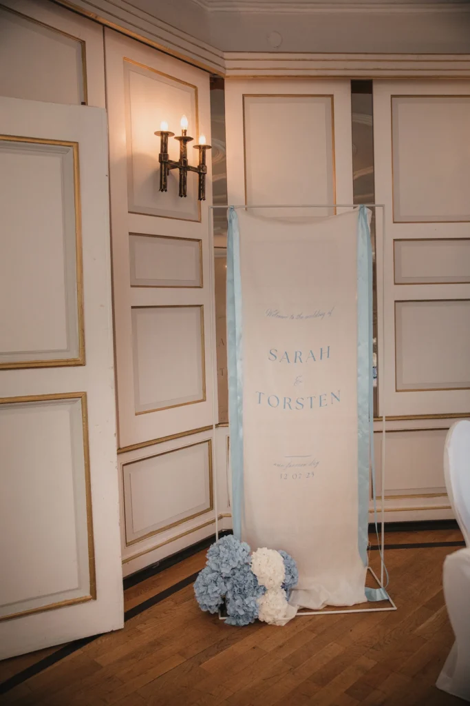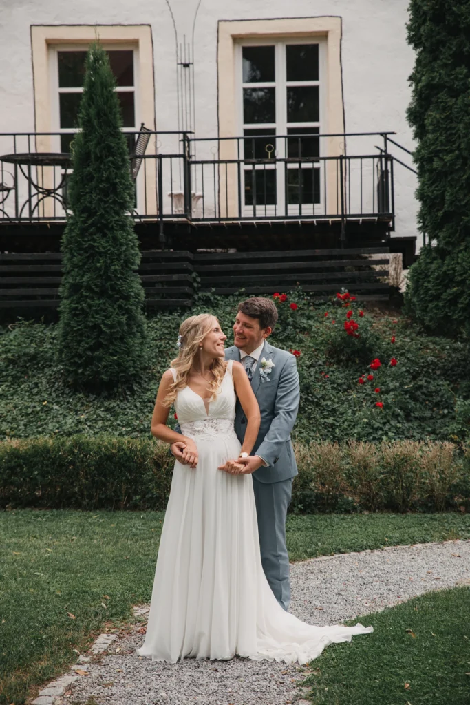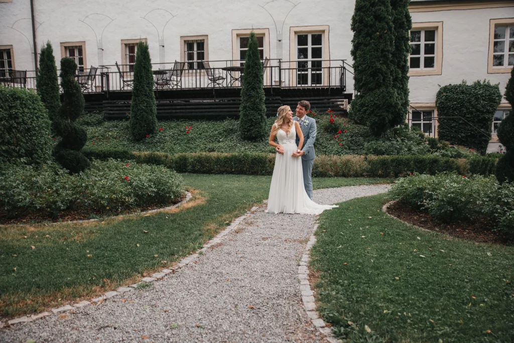 Die Feier fand im Schloss-Hotel Neufahrn statt – ein Ort, an dem historische Architektur, helle Innenräume und gepflegte Schlossgärten eine wunderbar elegante Bühne bieten.
