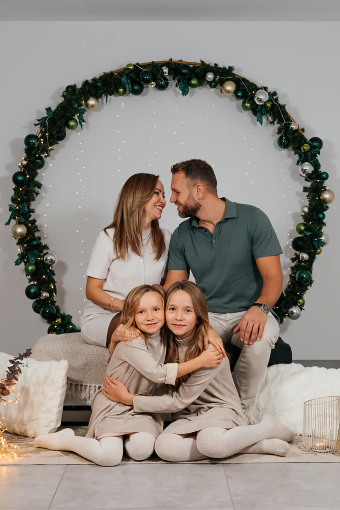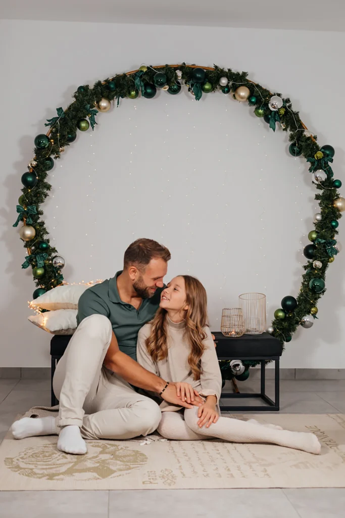 In meinem Studio wartet ein festliches Weihnachtsset mit einem riesigen Adventskranz und sanftem Lichterglanz – der perfekte Ort, um gemeinsame Momente festzuhalten, die für immer bleiben. 💚